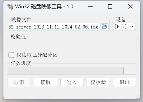 打开Win32DiskImager,插入U盘到电脑,会自动识别U盘,然后选择我们的固件(注意固件下载后要解压缩成iso文件)